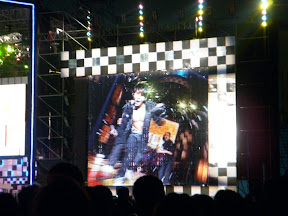 因為時間的關係,我們並沒有提早到演唱會場,才剛到會場外面,就聽到幾個女生尖叫著說"盧廣仲已經唱完了",還來不及回神,就看到中山足球場外面的攤販人潮,尤其是7-11,真的爆多到可以用人山人海來形容,不到現場應該很難想像那種光景,似乎是比去年野台開唱的時候還要來得誇張許多。之後不久,在外面就聽到王力宏唱起「改變自己」,於是快速地入場,哇!看台與場內草皮上滿滿都是人了。